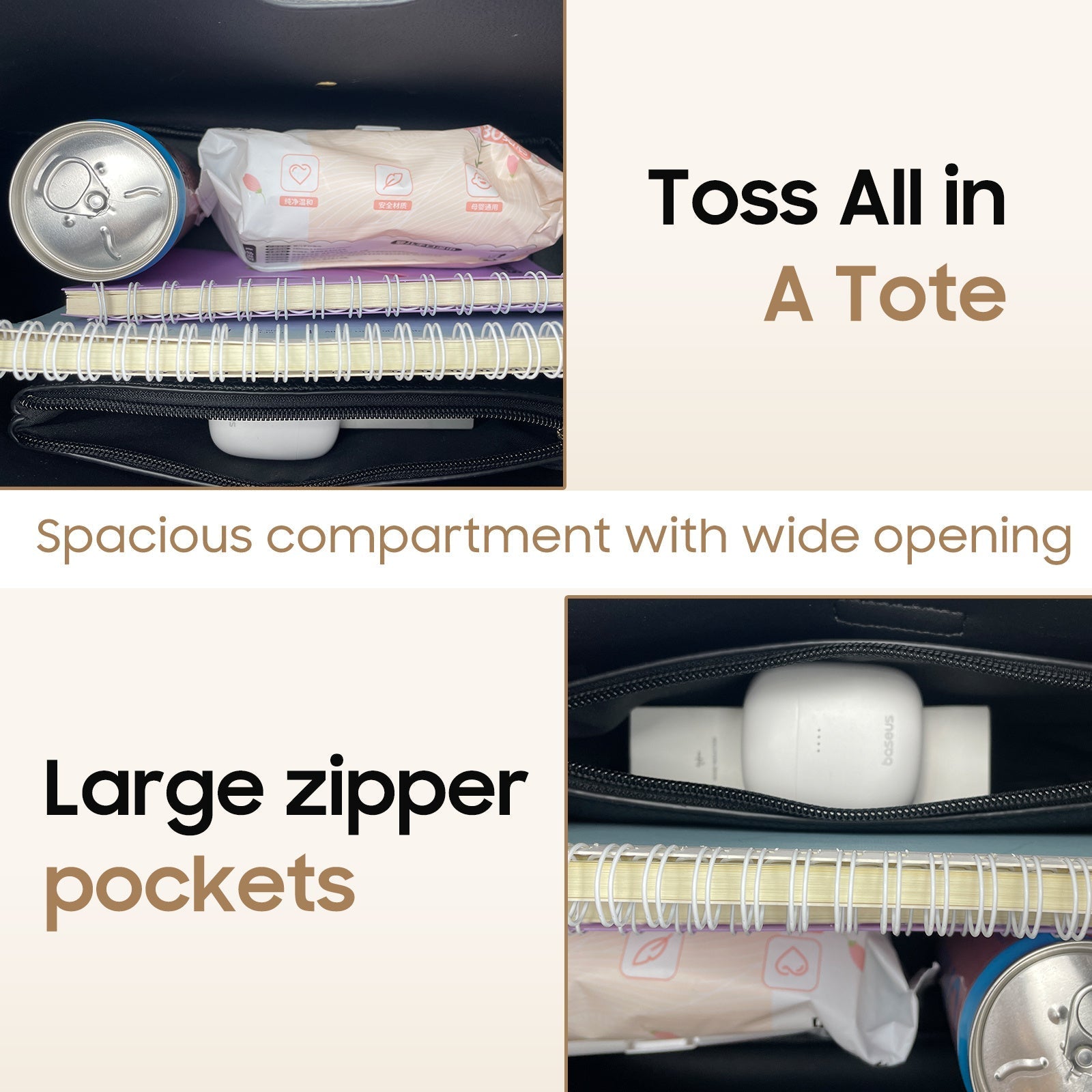 Women's Tote Handbags - Soft PU Leather Shoulder Tote Purses With Zipper For Stylish And Functional Everyday Use